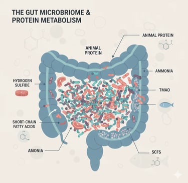 The microbiome determines whether animal protein behaves like food or poison. A healthy and diverse microbiome digests protein efficiently. It prevents excessive toxin formation, neutralizes harmful compounds, and protects the gut lining.